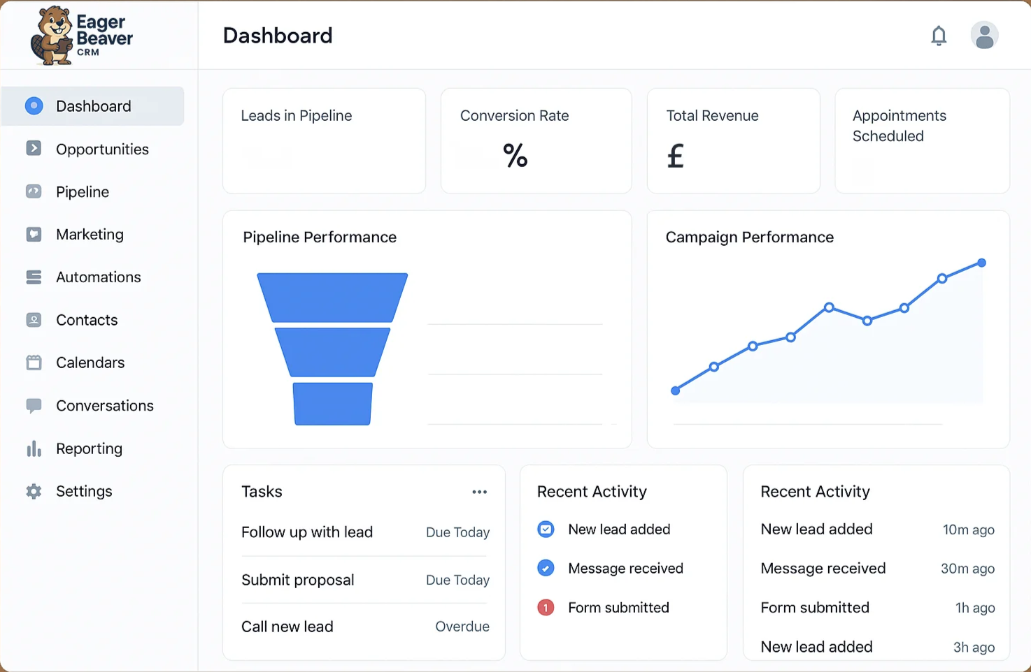 Eager Beaver helps you grow your brand and visibility with built-in tools for email campaigns, social media, landing pages, and reputation management. From polished designs to consistent messaging, we make it easy to market like a pro and keep your business front and center.